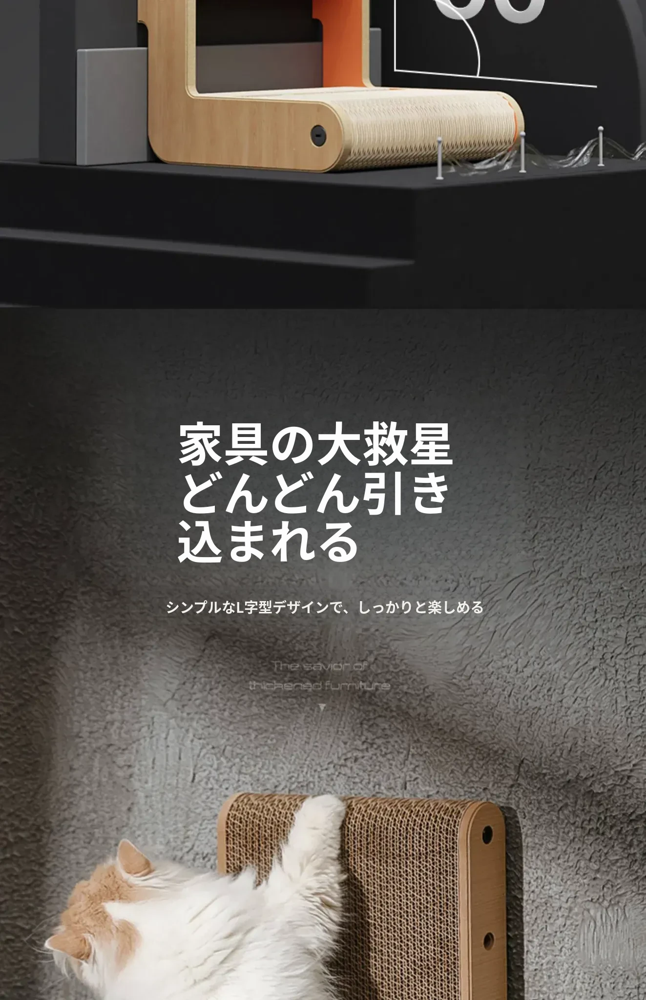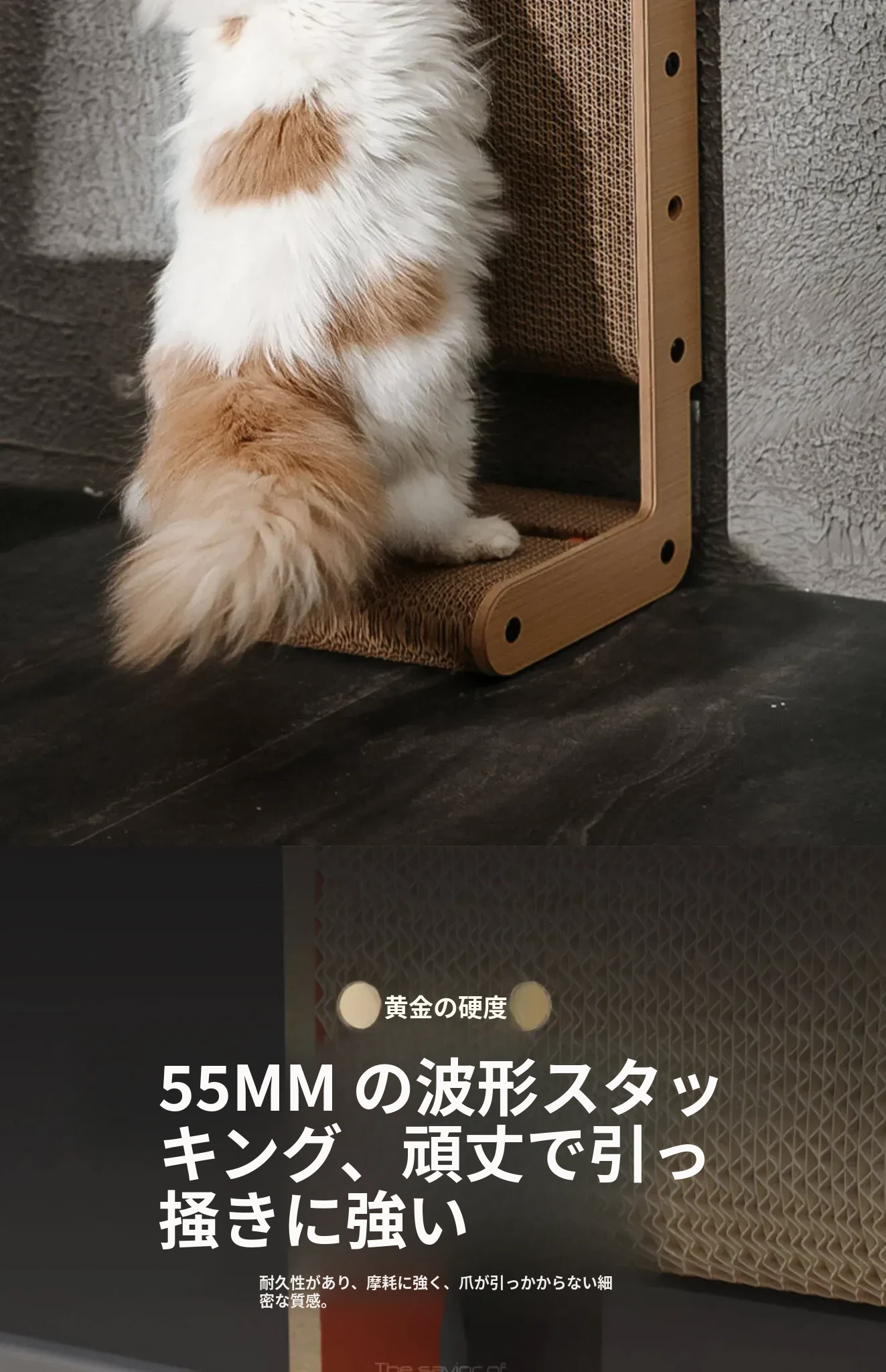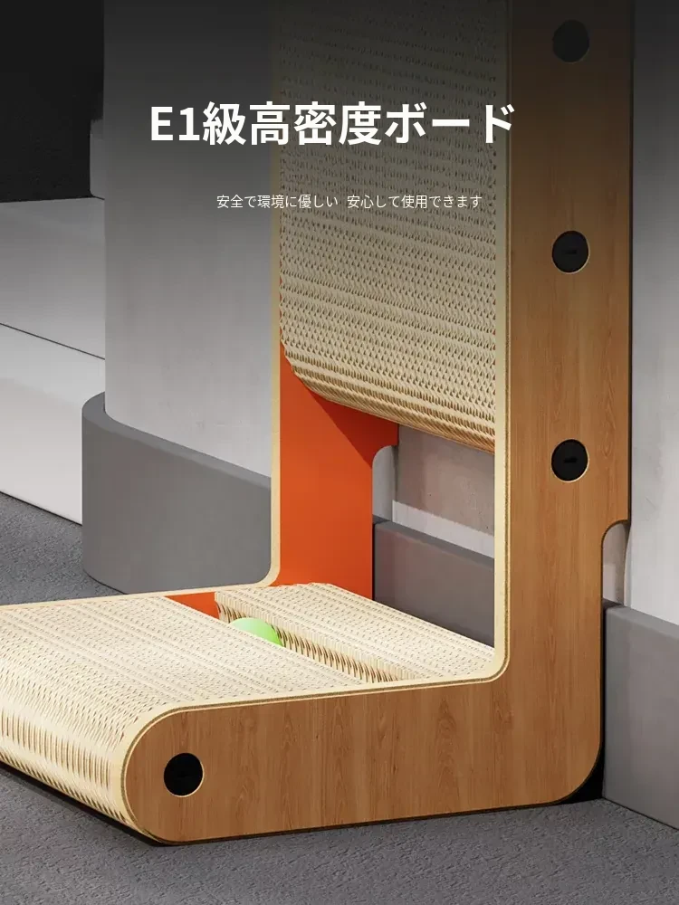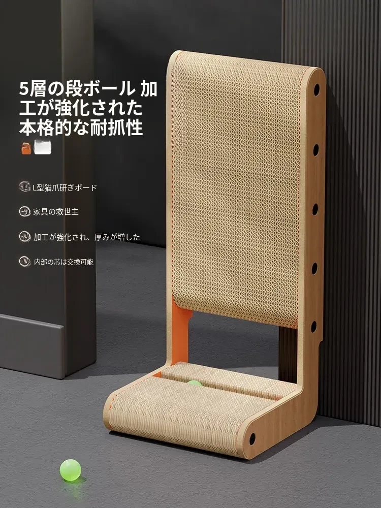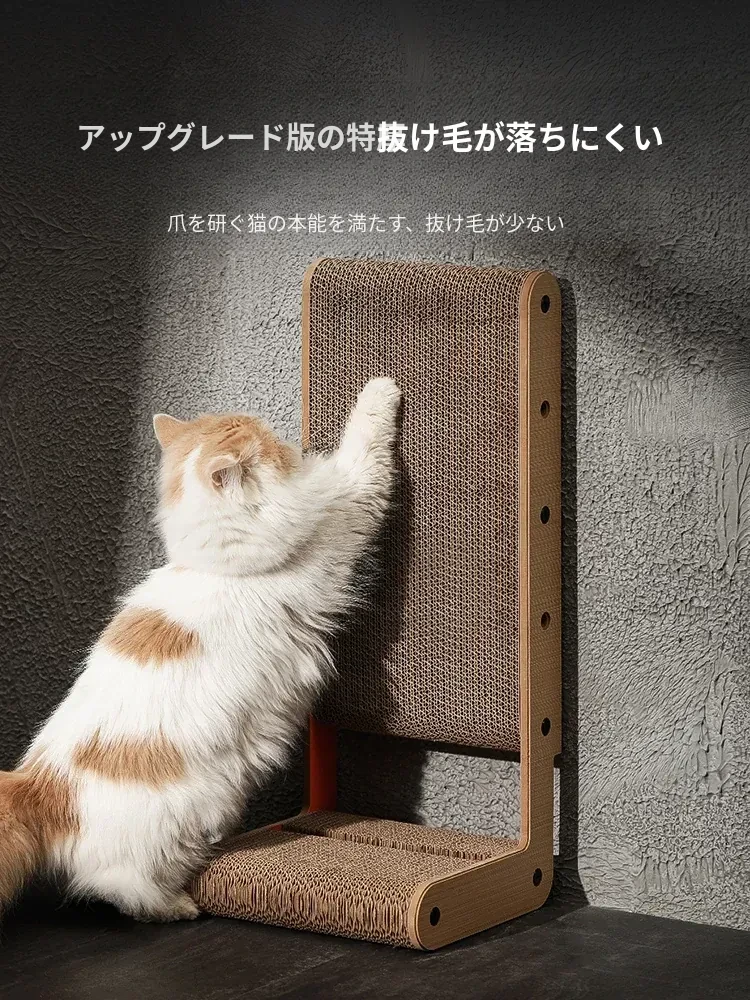 厚手型L字型キャットスクラッチャー&ベッド一体型!耐久性抜群、毛が抜けない大猫にも最適な段ボール製キャットトイで、遊びながら爪を研げる!