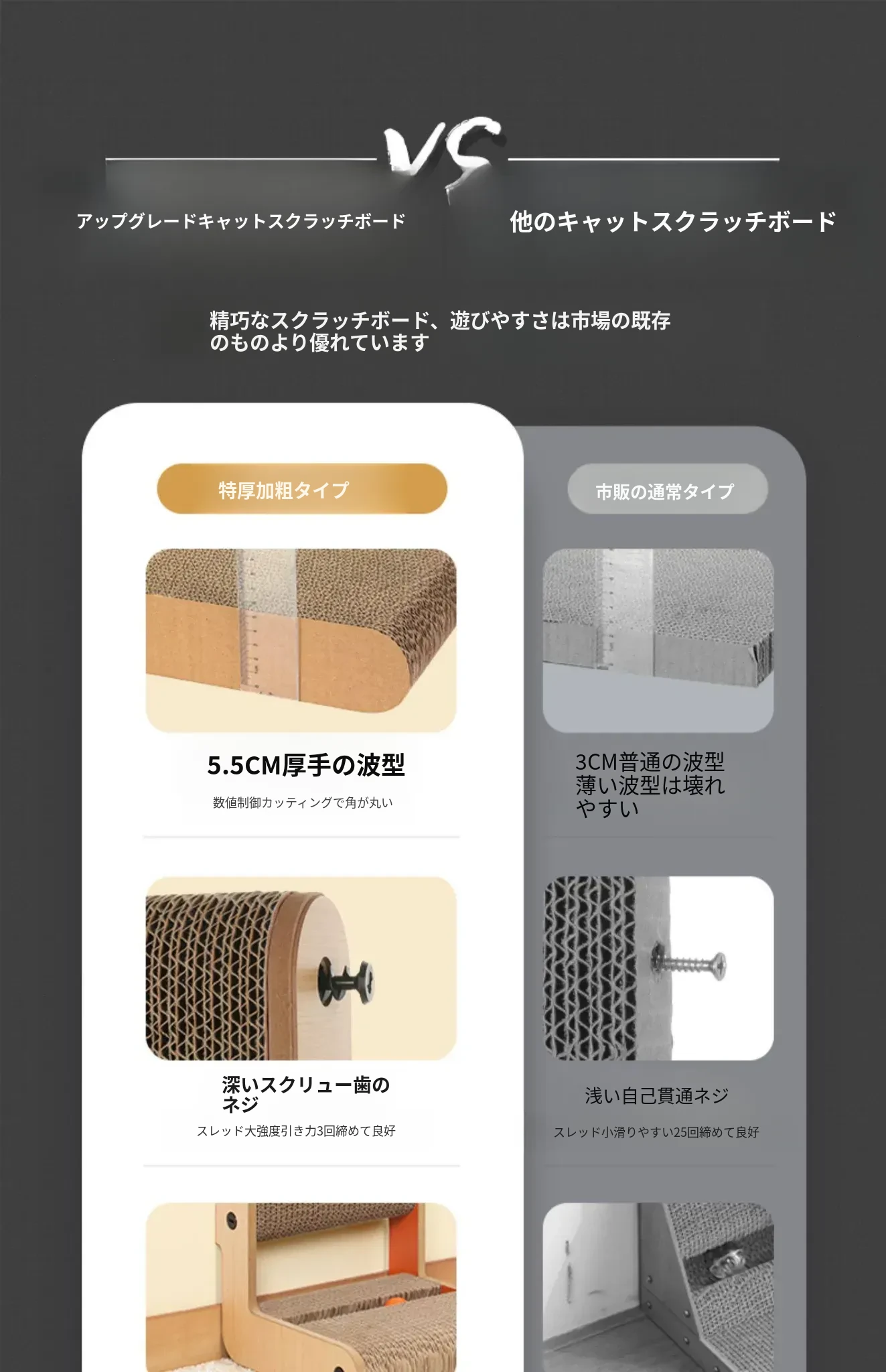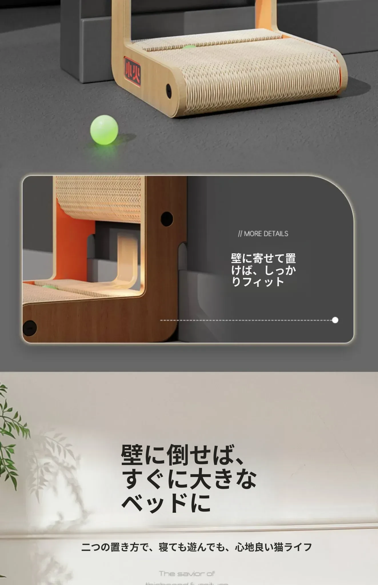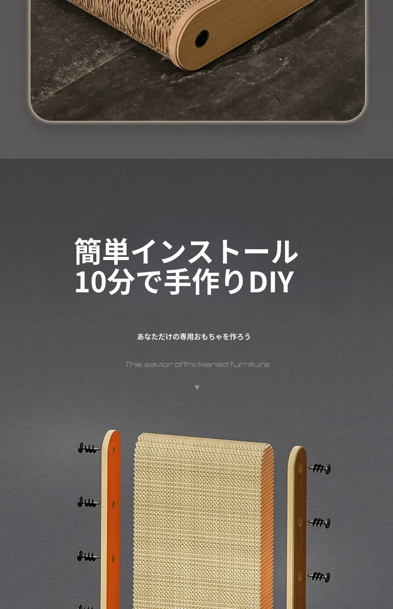 厚手型L字型キャットスクラッチャー&ベッド一体型!耐久性抜群、毛が抜けない大猫にも最適な段ボール製キャットトイで、遊びながら爪を研げる!
