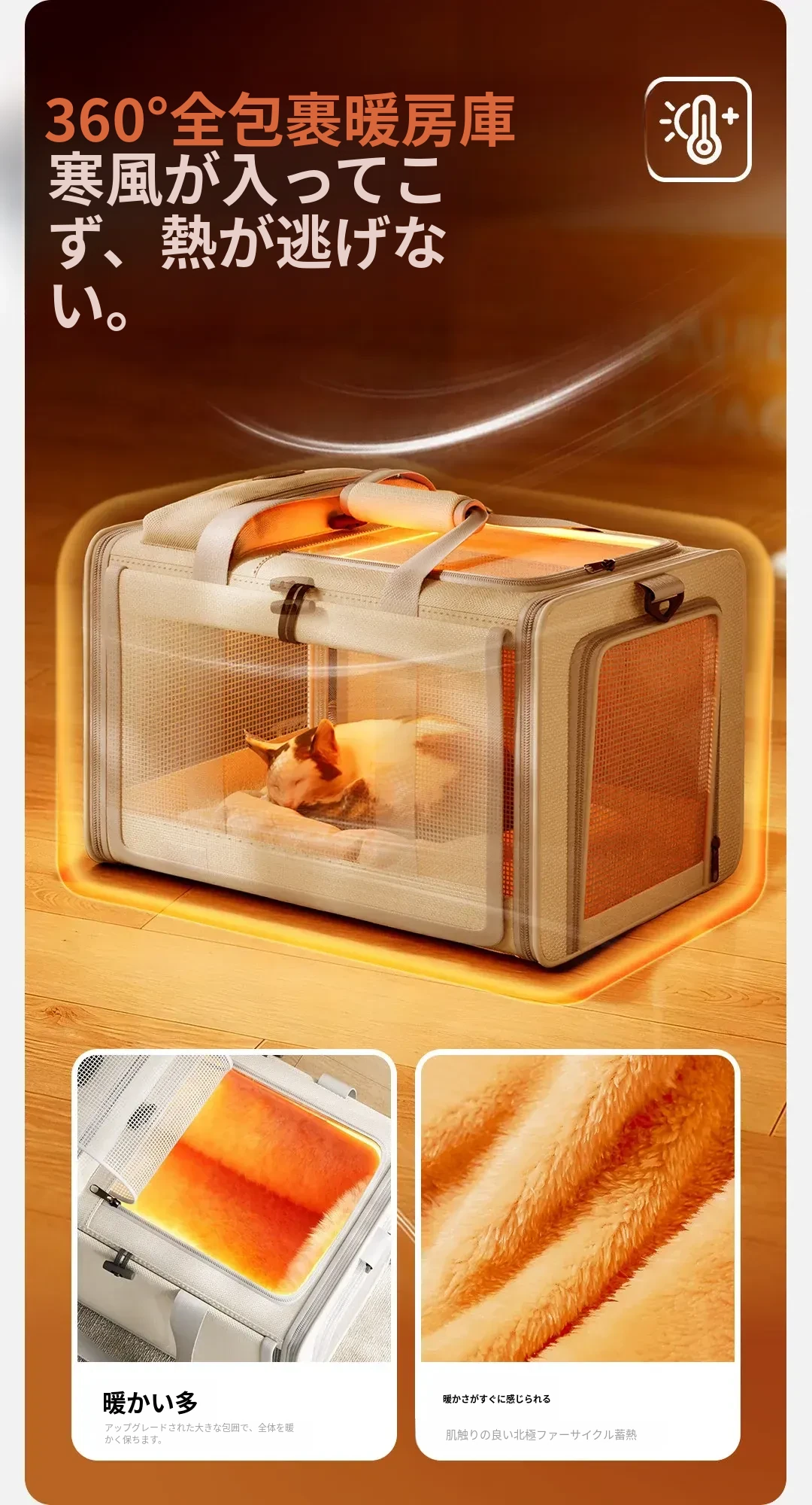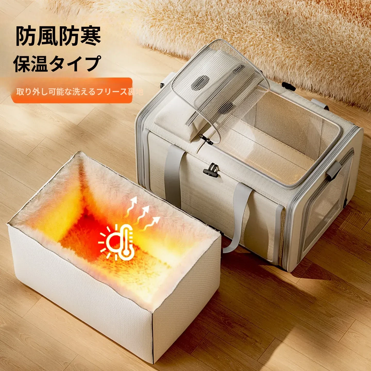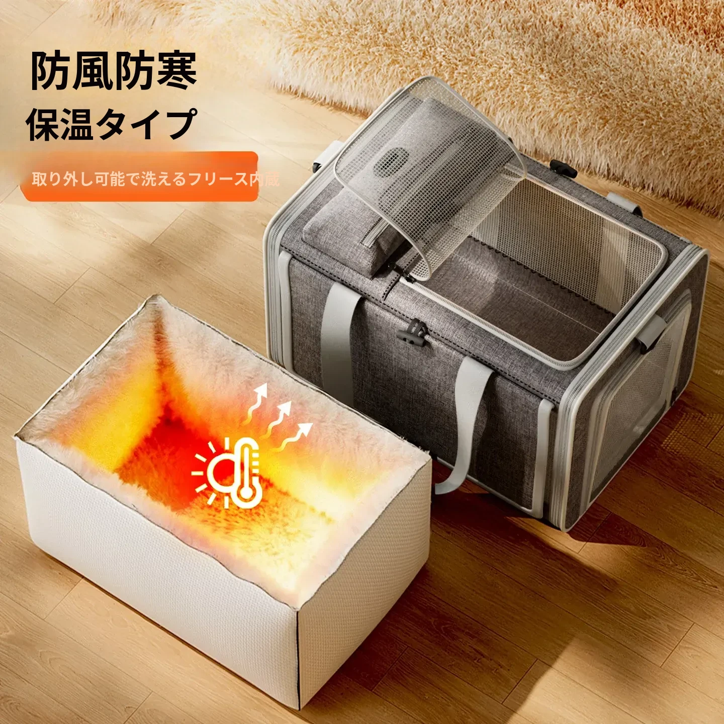冬に最適!保温機能付き猫バッグ - 便利な持ち運び&大容量で、四季を通じて愛猫と快適なお出かけを!ペットカーゴや犬用ケージとしても使える多機能デザイン。