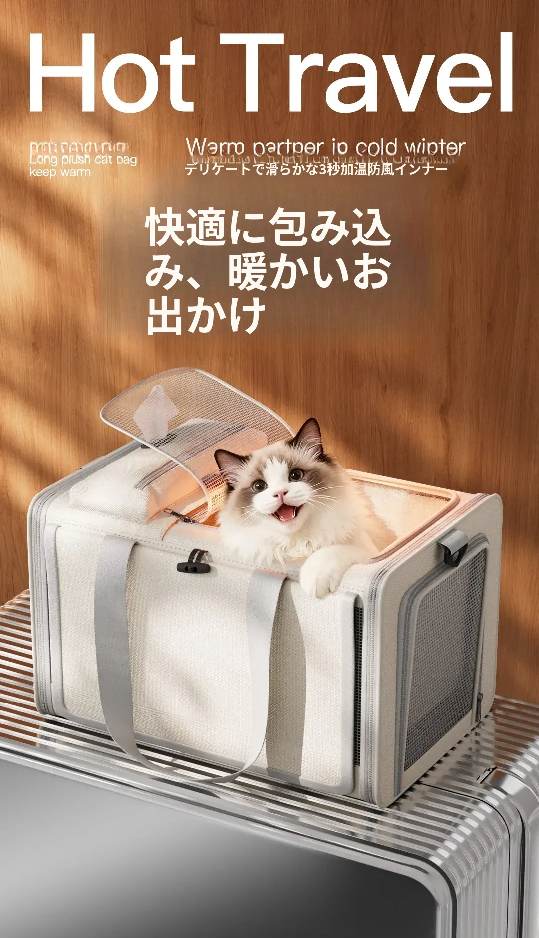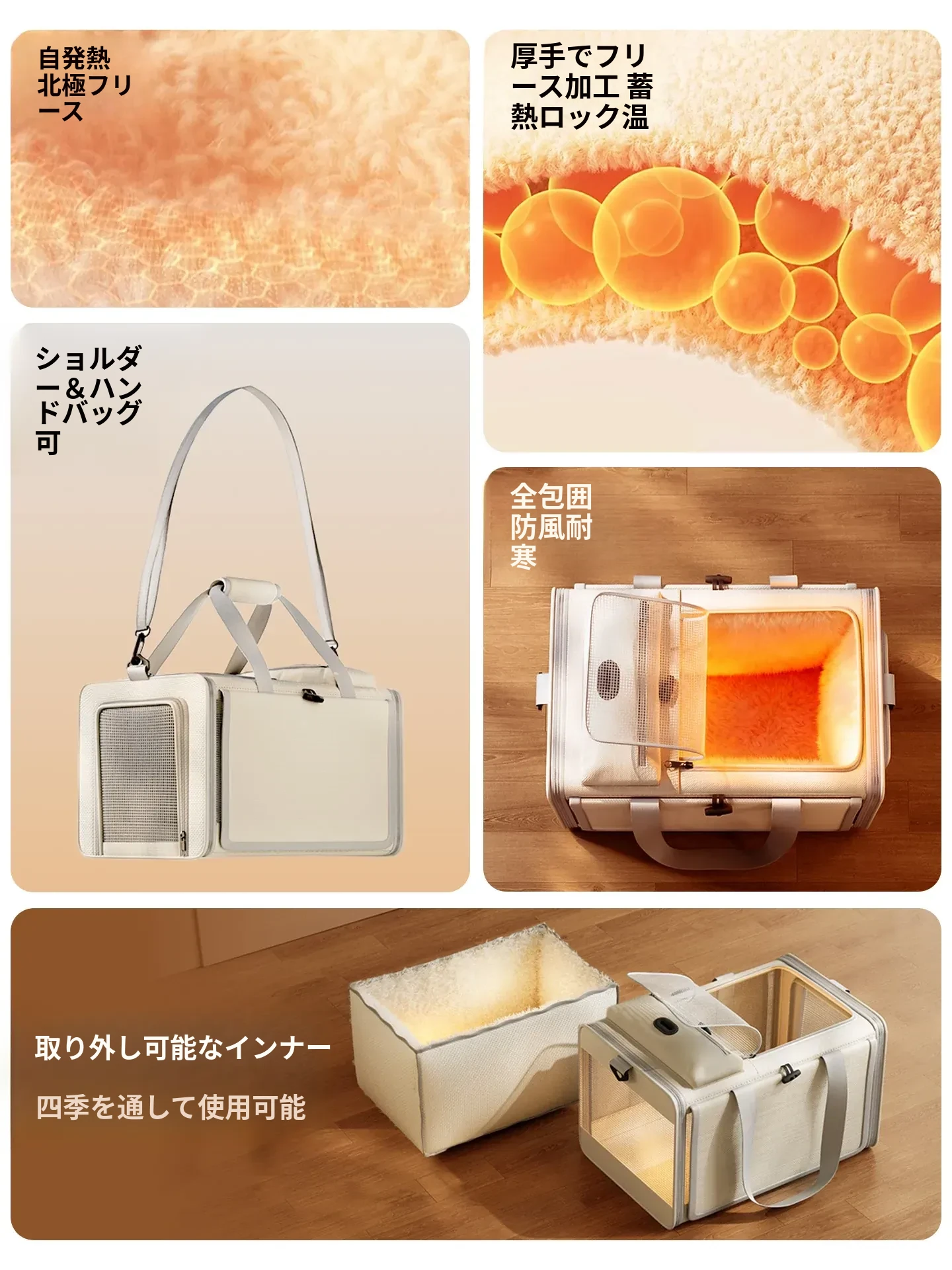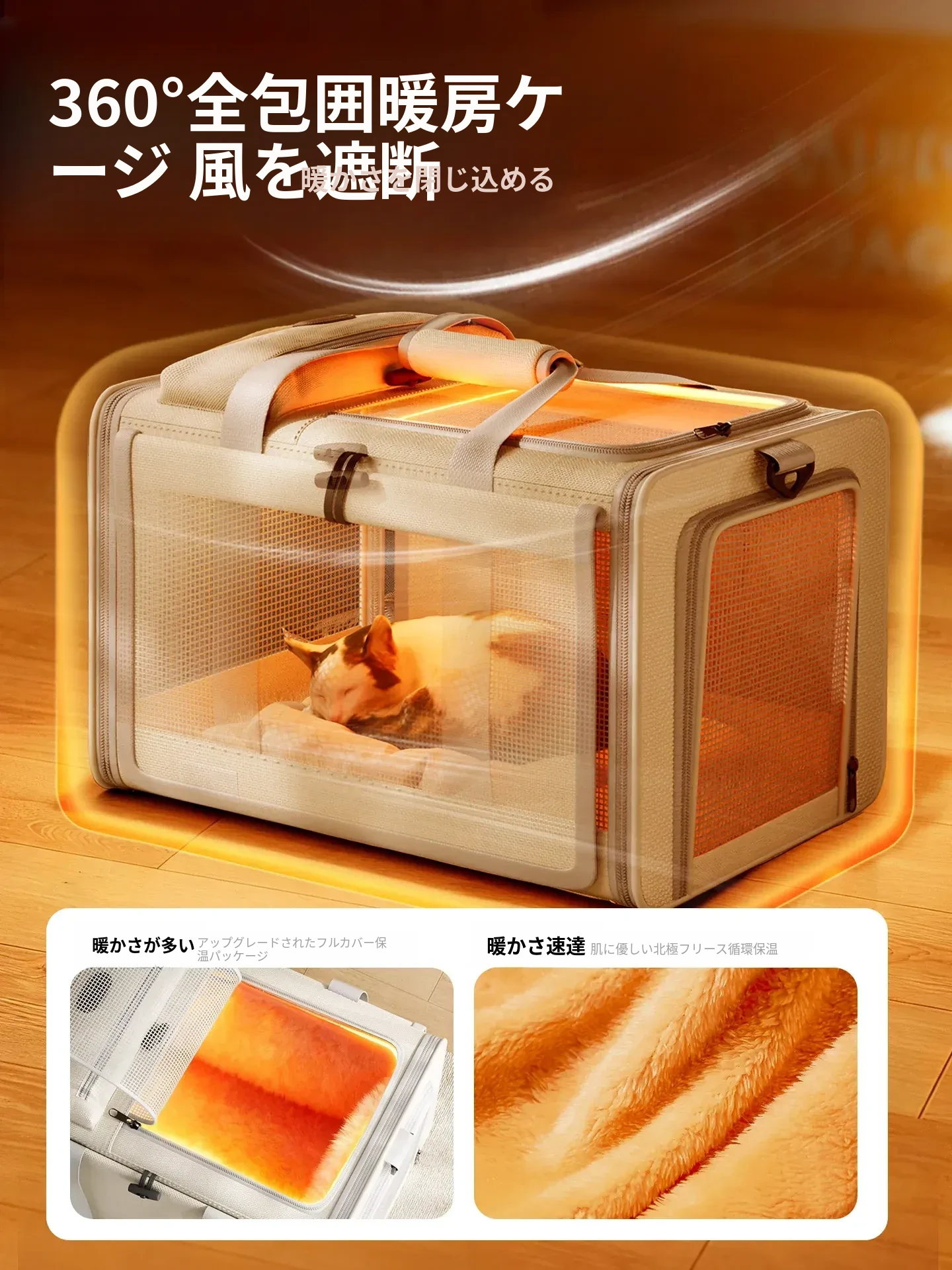 冬に最適!保温機能付き猫バッグ - 便利な持ち運び&大容量で、四季を通じて愛猫と快適なお出かけを!ペットカーゴや犬用ケージとしても使える多機能デザイン。