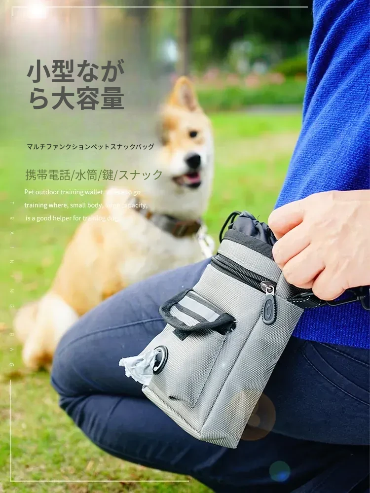 犬のトレーニングに最適!ゴールデンレトリバー、シェパード、ボーダーコリーにぴったりのウエストポーチ。お散歩中のトリーツやおもちゃをスマートに収納。快適なペットトレーニングを実現するアイテムです!