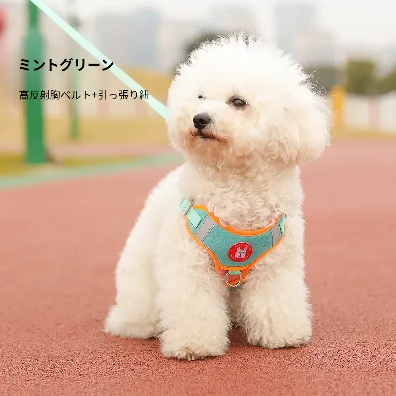 中小型犬用ハーネスリード - テディ、ビション、ポメラニアンに最適!脱走防止機能付き、愛犬とのお散歩をもっと楽しく!猫ちゃんにも使える胸背帯です。