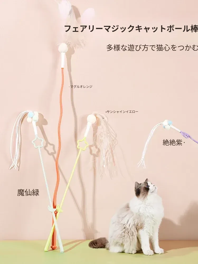 猫ちゃんのための楽しいおもちゃ!羽根付きロングスティックで、子猫も大満足!噛みごたえ抜群で、ストレス解消や運動不足解消に最適な猫じゃらし。遊びながら歯もケアできる、愛猫必見のアイテム!