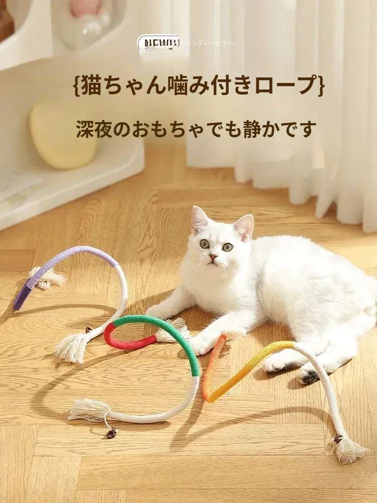 猫ちゃんのストレス解消!噛むのが楽しい、歯磨き効果もあるおもちゃ!虫瘿果のデザインで、可愛い子猫や幼猫も大喜び!夢中になれるキャットボール&ロープで、遊んで、噛んで、楽しいひと時を!