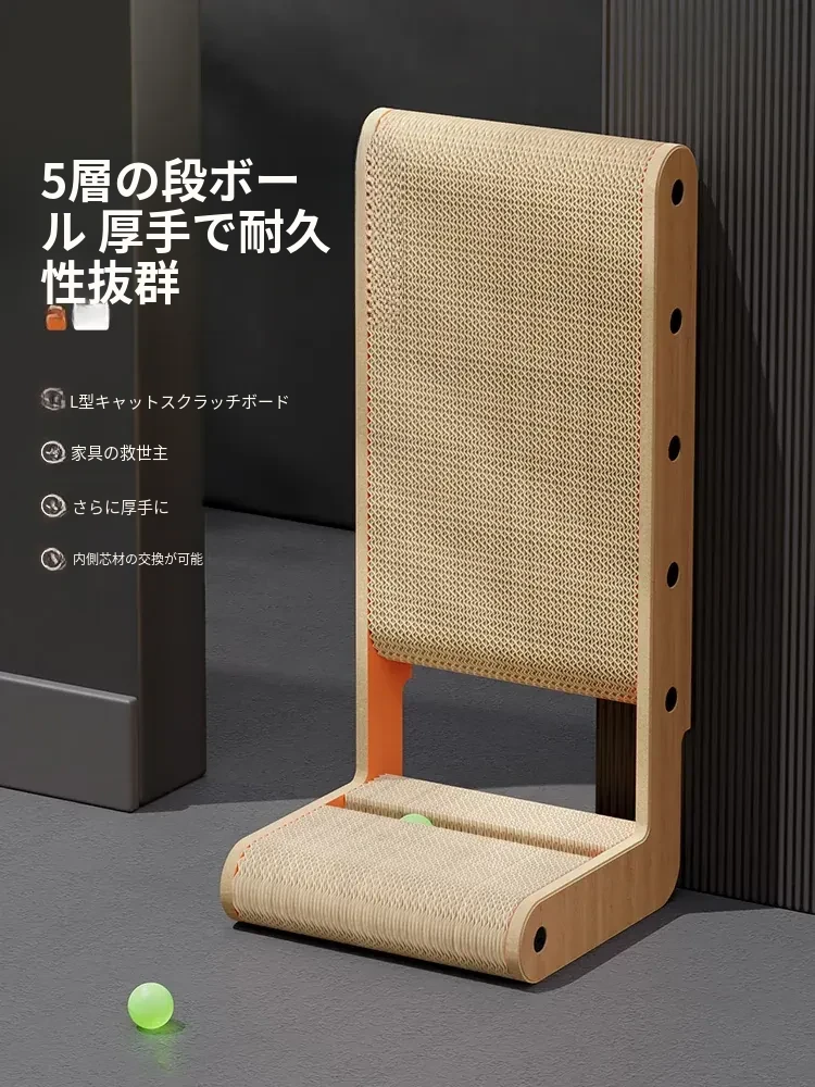 厚手型L字型キャットスクラッチャー&ベッド一体型!耐久性抜群、毛が抜けない大猫にも最適な段ボール製キャットトイで、遊びながら爪を研げる!