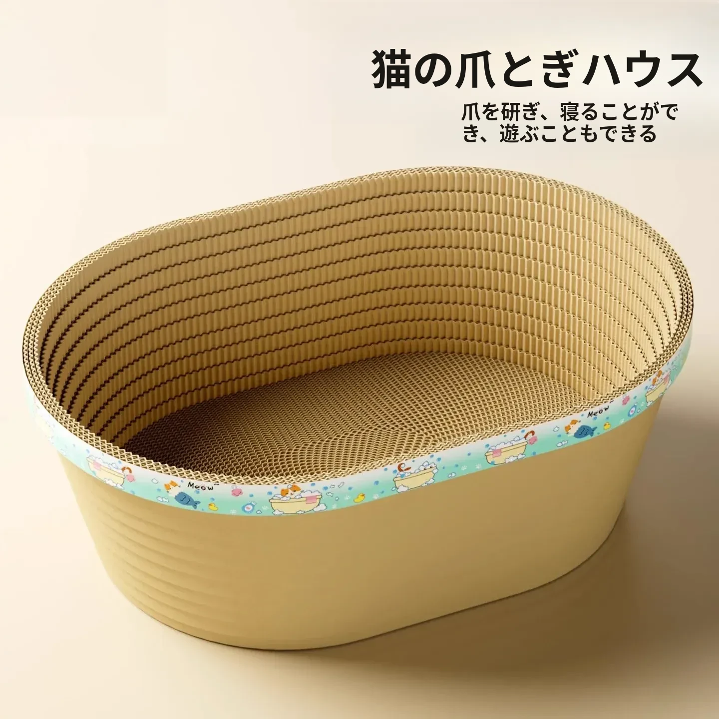 超大バスタブ型キャットスクラッチャー!耐久性抜群で毛も落ちない!猫の爪をしっかりケアし、快適な寝床にもなる段ボール製キャットベッド。猫ちゃんのための理想的な爪研ぎボウル!