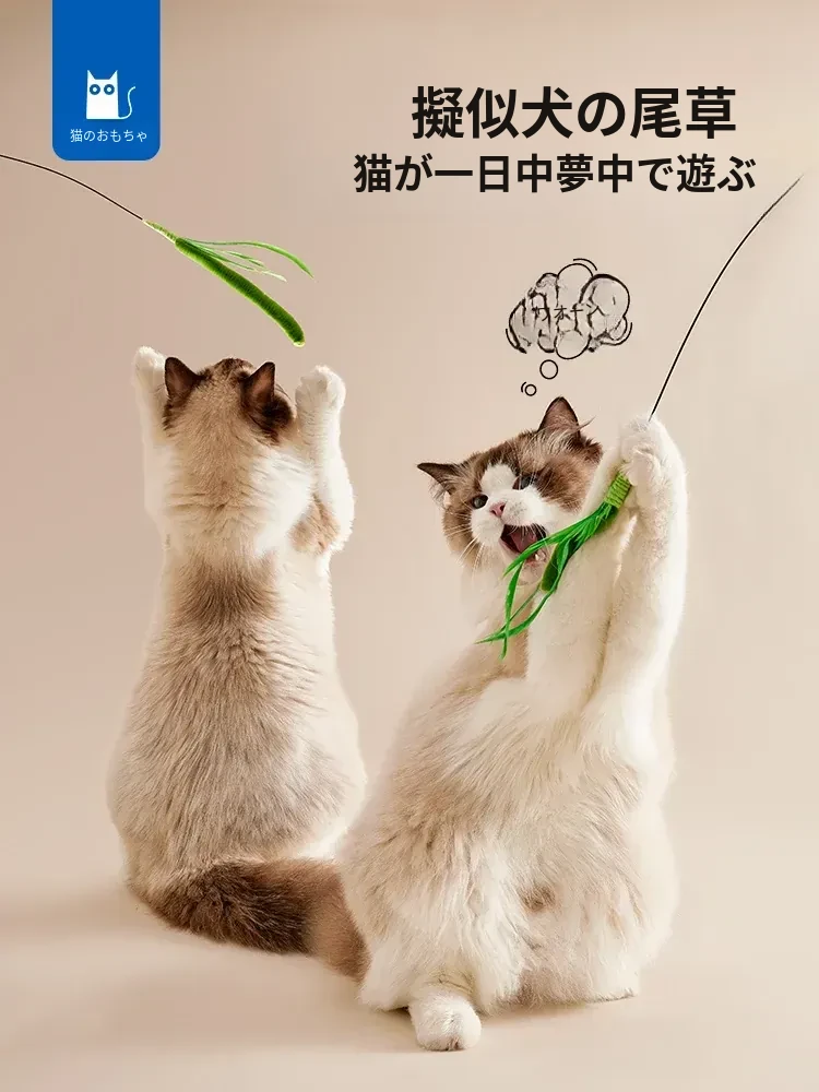 猫ちゃんが夢中になる!持ち手付きの長い猫おもちゃ「犬の尻尾草」耐噛性でストレス解消、遊び心満載の必需品!子猫から大人の猫まで楽しめるおもちゃです。
