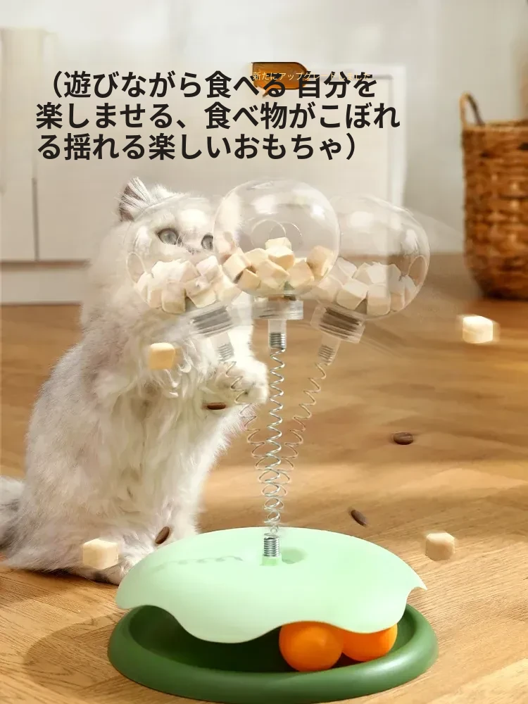 猫ちゃんの食べこぼし防止おもちゃ!楽しいキャットボールと回転おもちゃ、あなたの猫を夢中にさせるおやつ・冷凍乾燥おやつ付き!ストレス解消&自遊びに最適なペット用おもちゃです!