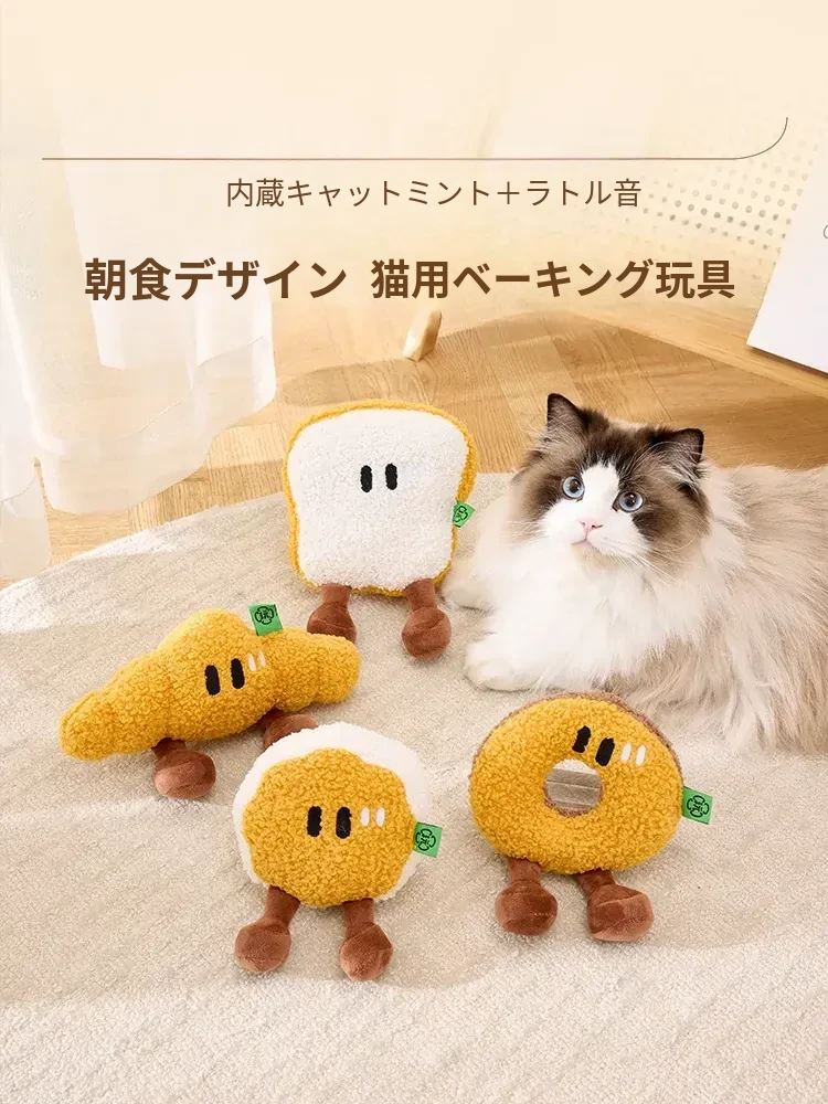 子猫専用!音が出るパン型おもちゃ - 自分で楽しめる!歯磨き効果もあり、猫ちゃんの退屈を解消する最強の遊び道具!音を鳴らして猫を夢中にさせる、楽しいおもちゃです!