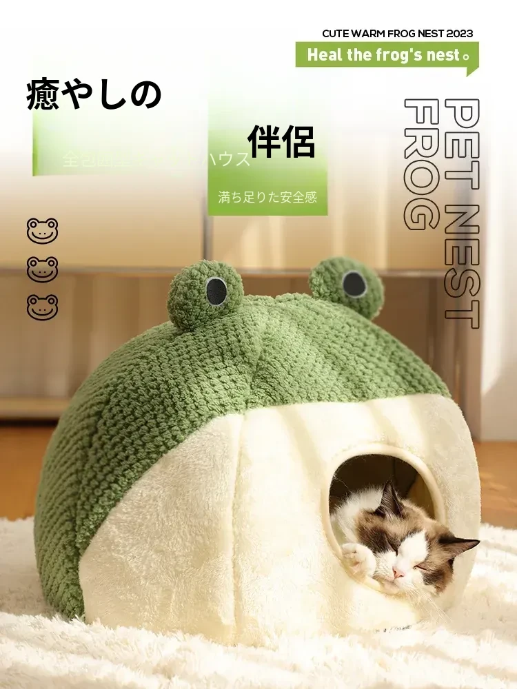 冬の暖かさを守る半封閉式猫ハウス!安心感抜群の子猫用ベッド、寒い季節にぴったりのスリッパ型デザイン。あなたの愛猫を心地よく包み込む、冬の必需品!