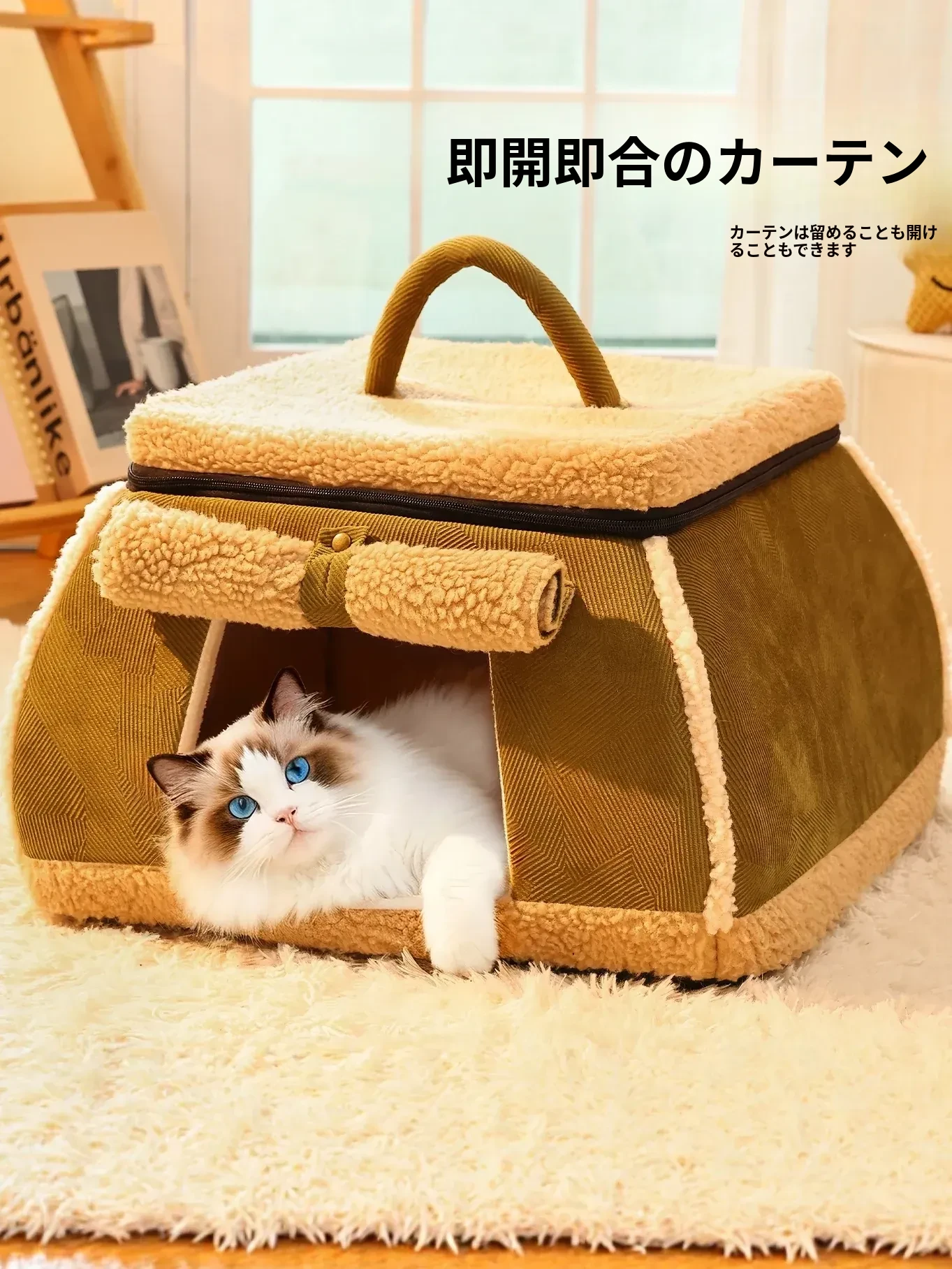 冬季にぴったり!暖かくて洗える半閉鎖式キャットハウス - 四季通用の快適な猫ベッド、猫ちゃんが冬に安心して眠れる場所を提供します。