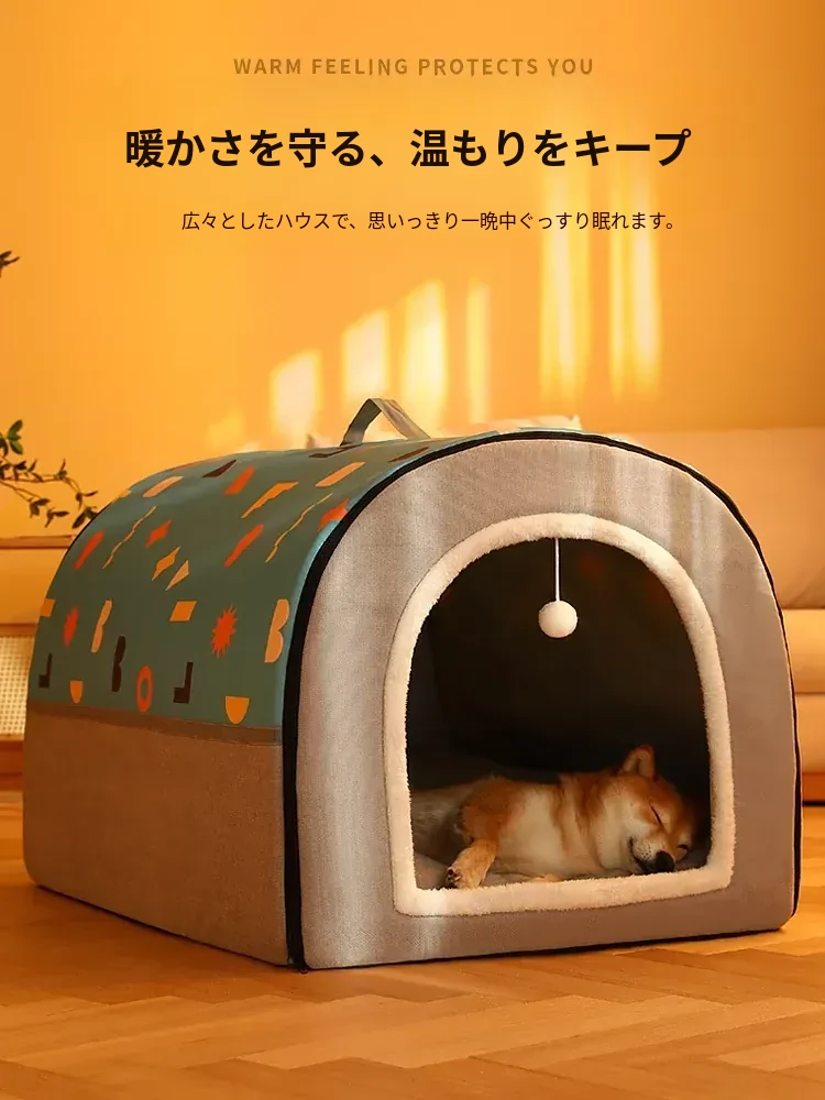冬季暖かい犬小屋!中小型犬に最適な半密閉型デザインで、愛犬と愛猫が快適に眠れる温かい寝床。寒い季節でも安心して休めるペットのための理想的なスペース!