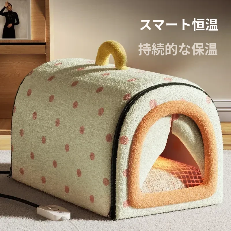 冬の寒さ対策!厚手で暖かい加熱猫ハウス - 安全感満載の封閉式デザイン!超大サイズで猫も犬も快適に眠れる!