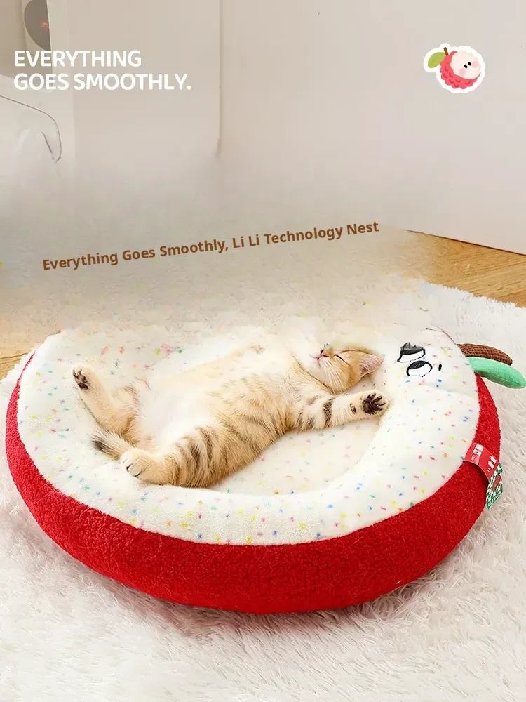 Cozy Plush Winter Cat Bed - Cute Lychee Shape, Perfect for Small to Medium Cats and Dogs, All-Season Warmth and Comfort