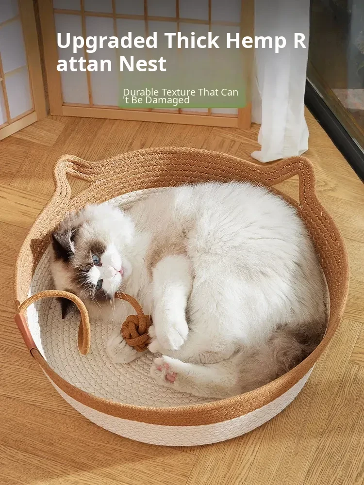 Versatile Rattan Cat Bed for All Seasons - Cozy Summer Mat and Scratching Board for Cats and Dogs - Perfect Pet Supplies for Your Furry Friends!