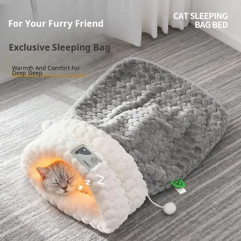 Warm and Cozy Winter Cat Bed - Thick Sleeping Bag for Kittens, Safe Hideaway with Windproof Tunnel for Extra Comfort and Security