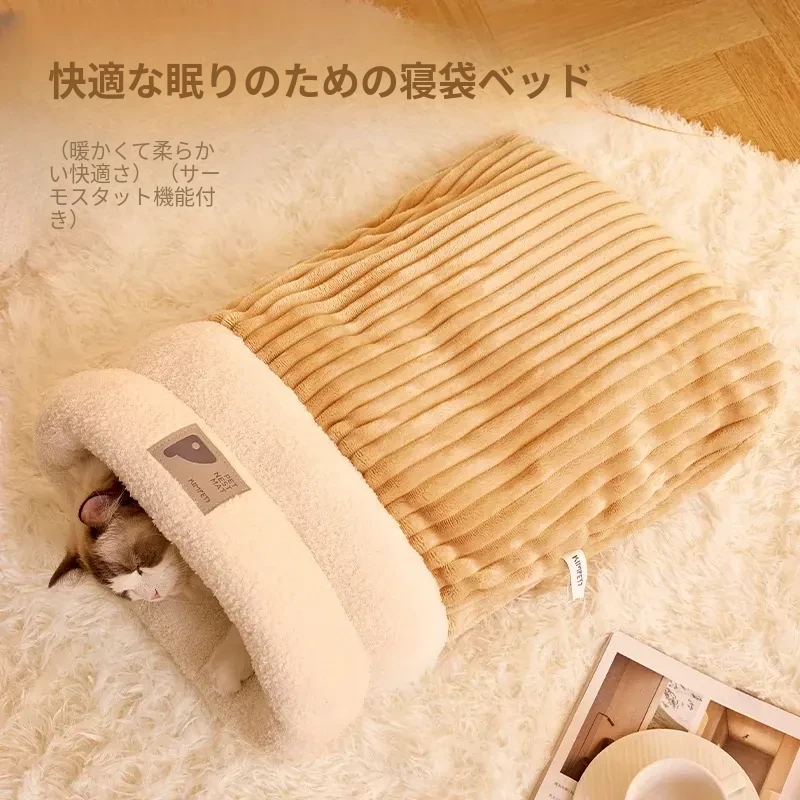 冬の暖かさを保つ!猫ちゃんが安心して眠れる封閉型猫ベッド - 四季通用の快適な寝袋。小さな猫にもぴったりの寝具で、愛するペットに最適な居場所を提供します。