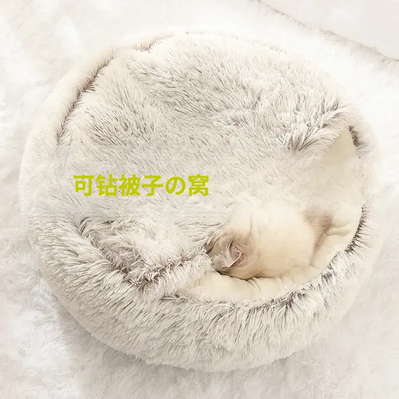 冬でも暖かい!猫ちゃんのための半封閉式ペットハウス、季節を問わず使える毛布付き。愛犬も快適に眠れる冬用ベッド!