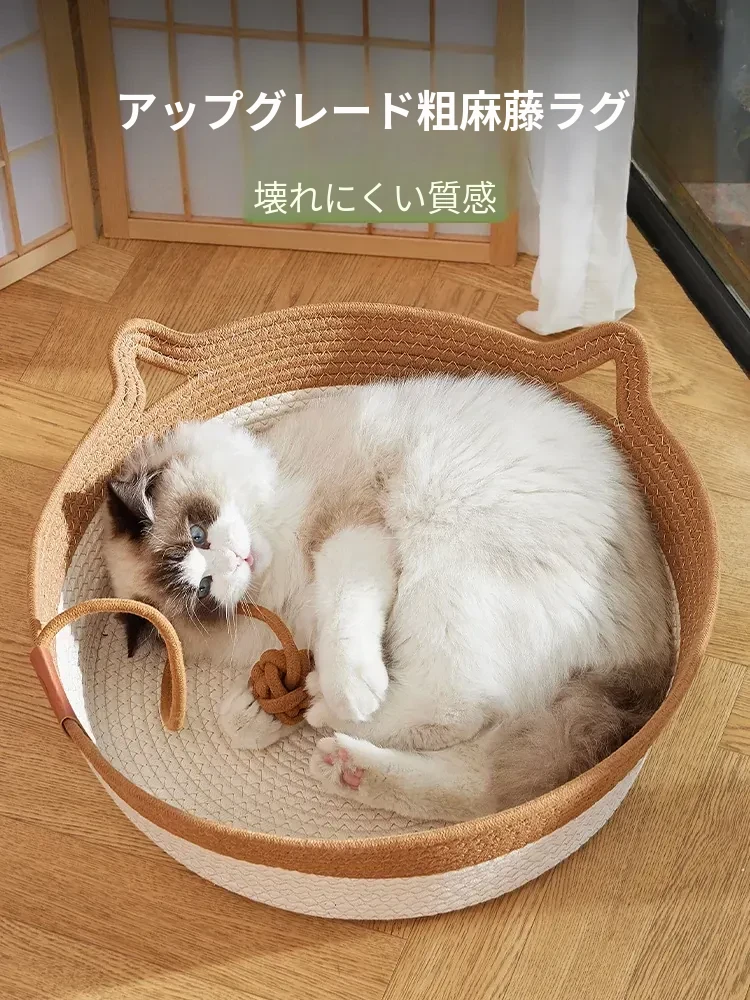 通年使用の藤編み猫ハウス・粗麻製の犬用ベッド、夏にぴったりの猫用マット&爪とぎ付き!愛するペットの快適な睡眠をサポートする夏の必需品!
