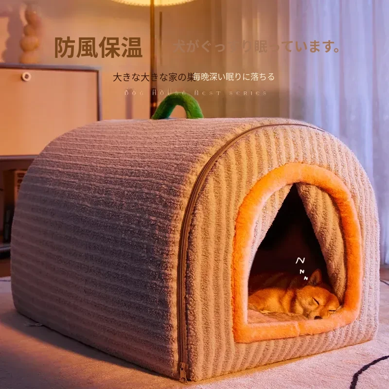 犬用冬季保温ハウス - 大型犬やゴールデンレトリバー、柴犬にもぴったり!持ち運び便利なハンドル付きの閉じたデザインで、愛犬が快適に眠れる理想のペットベッド。寒い季節でも安心して過ごせます!