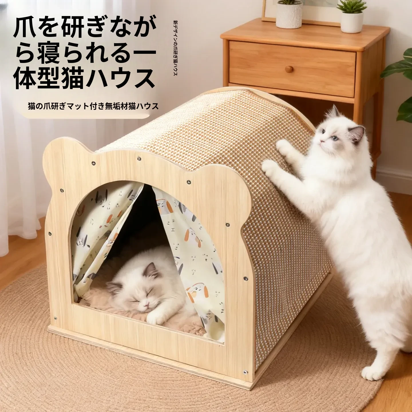 猫ハウス&キャットタワー一体型!耐久性抜群で毛が抜けにくい!冬でも暖かく、四季を通じて使えるネコちゃんの遊び場。愛猫のための快適空間を提供します!
